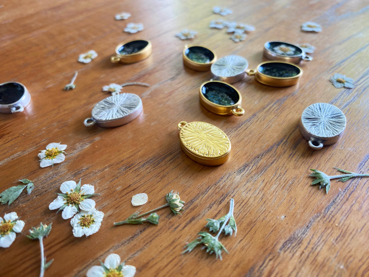 Exclusive jewelry made with authentic natural materials encased in resin, so you can carry a piece of nature wherever you go.