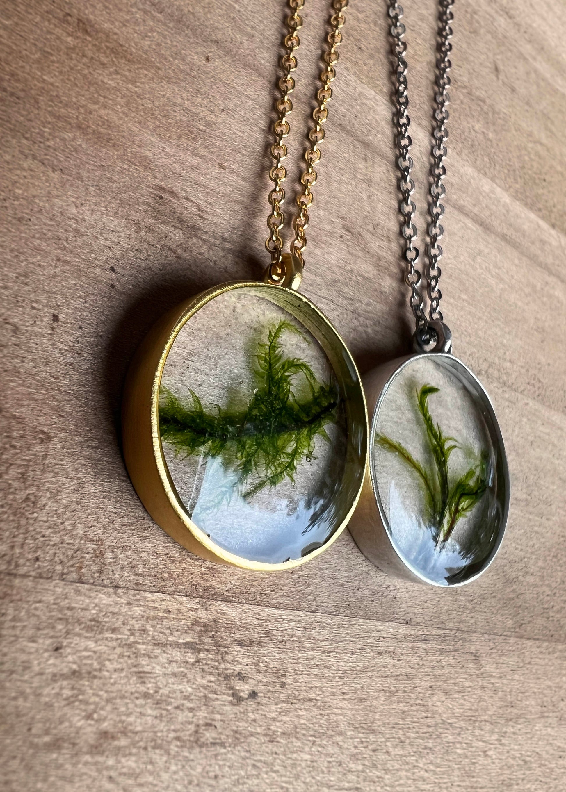 Each pendant is handmade and completely unique. The moss varies naturally in form and texture, so every necklace has its own distinct expression — just like in nature.